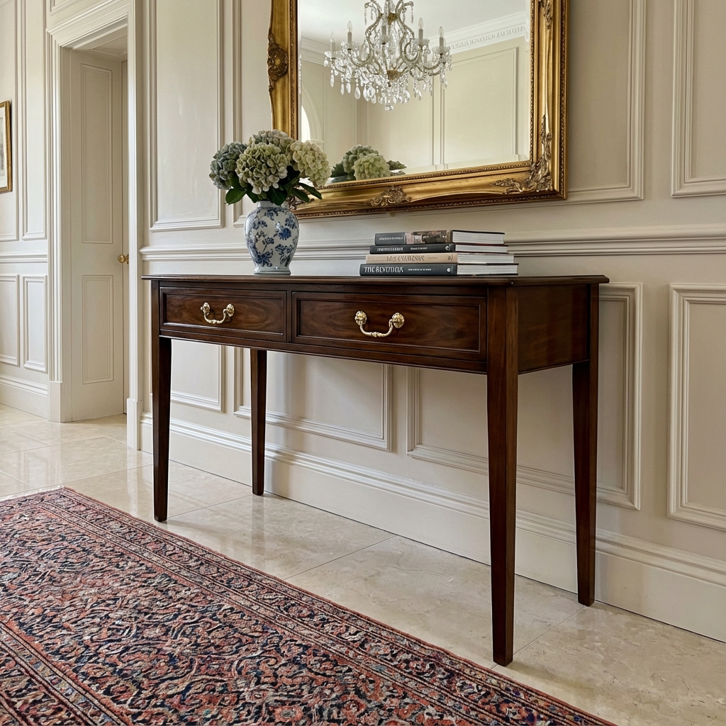Boya katmanları altında kaybolmuş ahşap dokusu ortaya çıkarıldı, pirinç kulplarla tamamlandı.